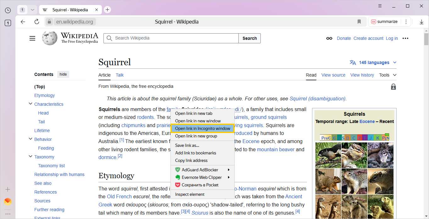 • Right-click the link and select Open link in Incognito mode.