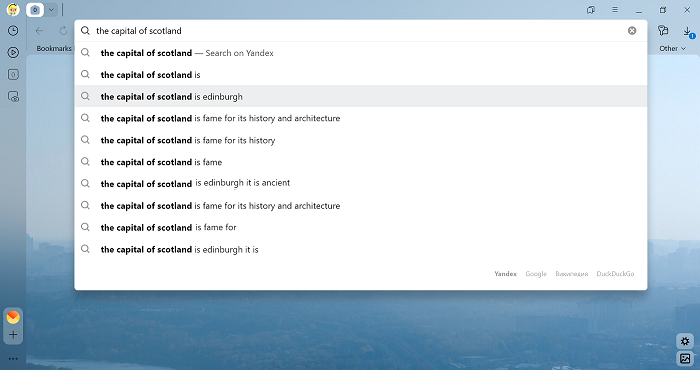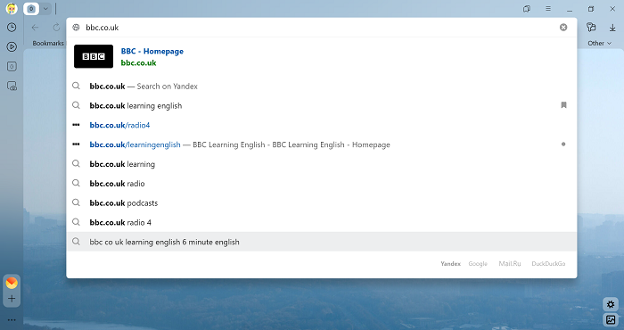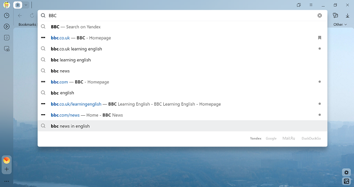 You can enter search queries in the address bar and Yandex Browser will understand what you need.