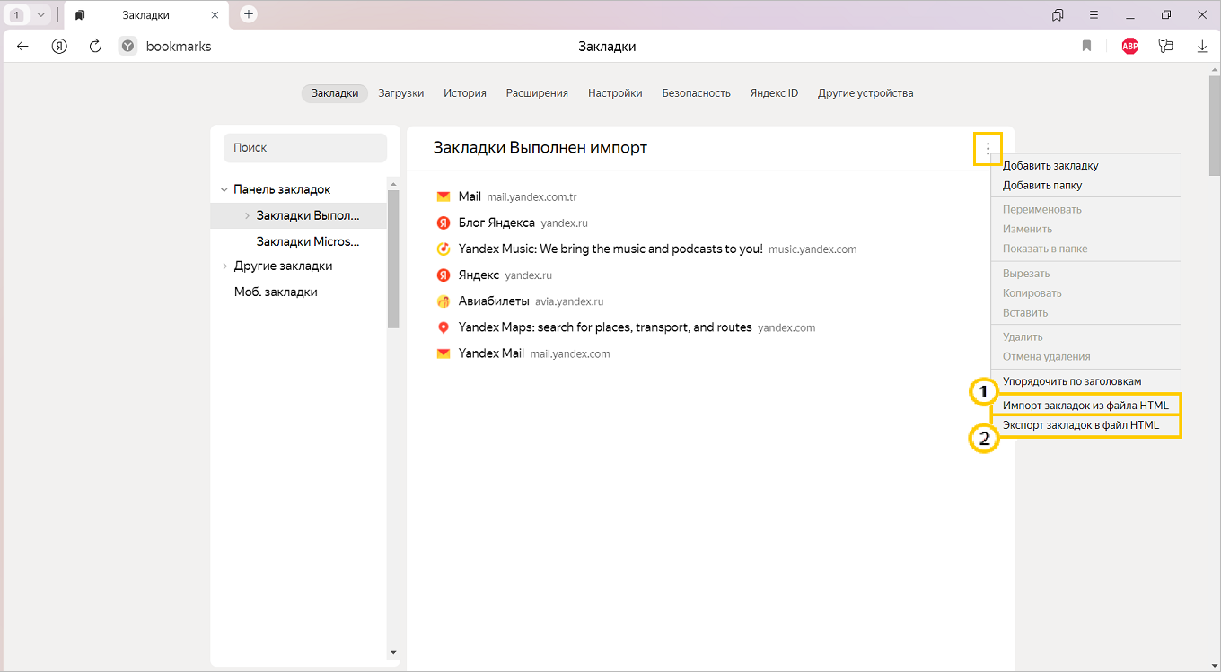 Импорт закладок