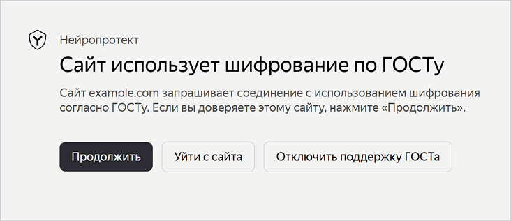 Если сайт запрашивает шифрование TLS по ГОСТу