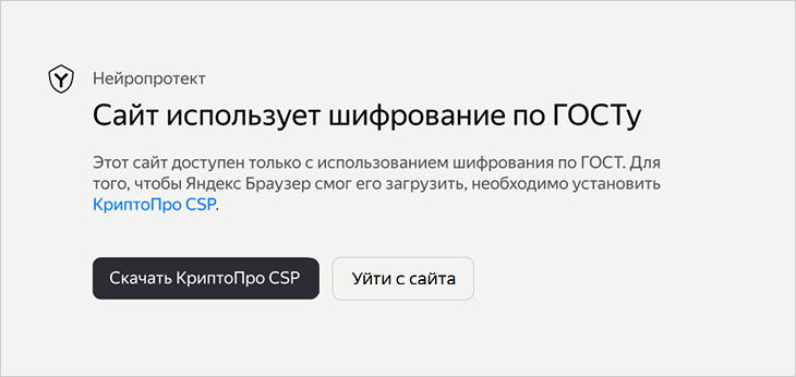 СКЗИ может быть встроено в носитель либо установлено на компьютер. Яндекс Браузер поддерживает утилиту КриптоПро CSP в качестве СКЗИ.