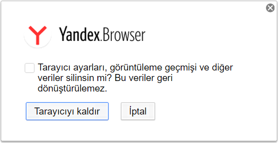 Veriler ve ayarlar yalnızca yerel bilgisayardan kaldırılır. Eşitleme yaptıysanız profil bilgilerinin büyük bir kısmı Yandex sunucusuna kaydedilmiştir. Yandex Browser yeniden indirilip kurulduktan ve sunucuyla eşitlendikten sonra tüm kişisel verileriniz ve tarayıcı ayarlarınız otomatik geri yüklenir. Verilerinizin geri yüklenmesini istemiyorsanız bunları sunucudan silin.