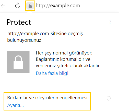 Protect panelinde, bağlantı durumunun gösterildiği bölümde Daha fazla bilgi bağlantısına tıklayın.