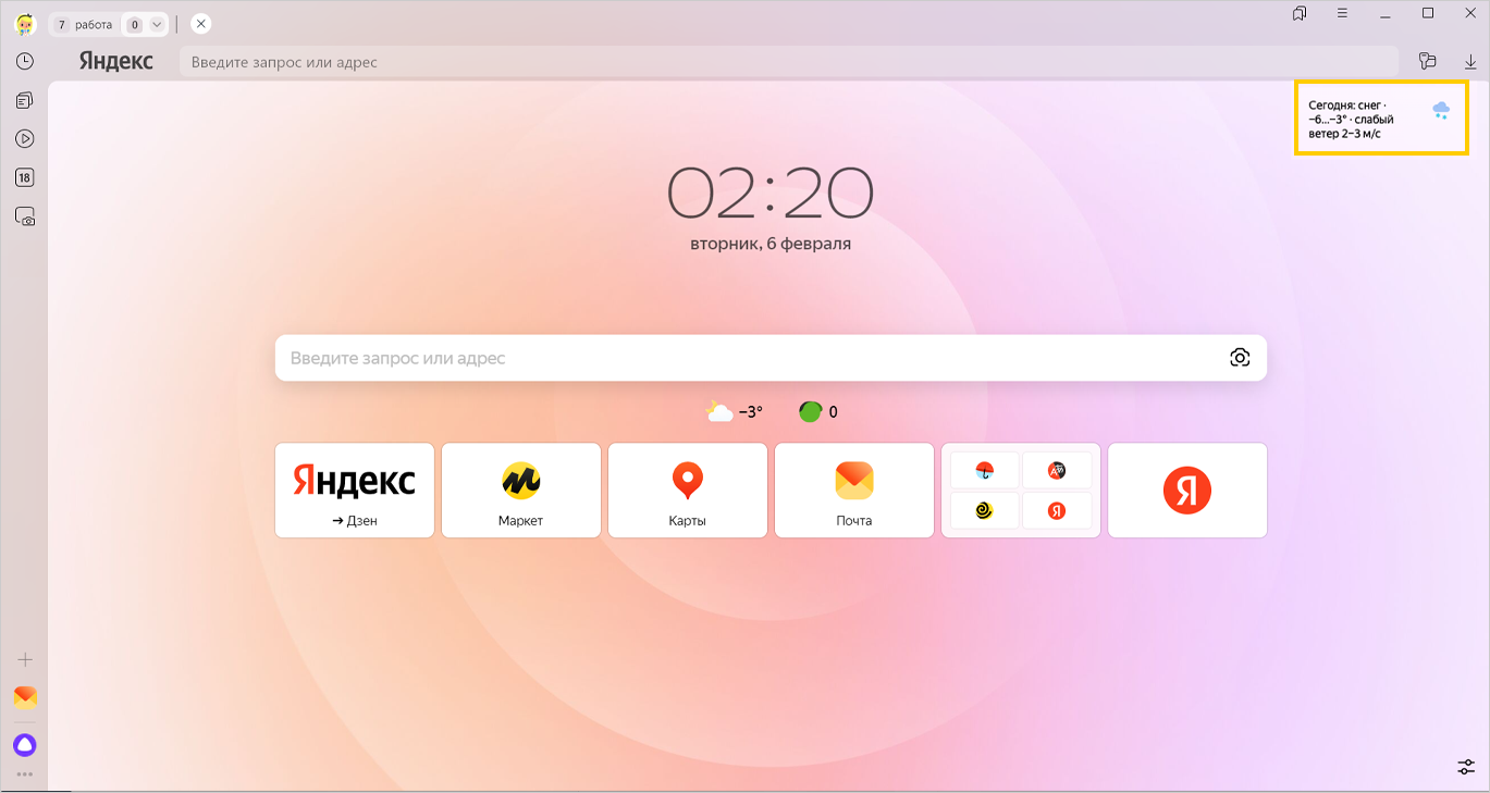 Manzil satriga qidirish soʻrovlarini kiritish mumkin — Brauzer sizga nima kerak ekanini oʻzi tushunadi.