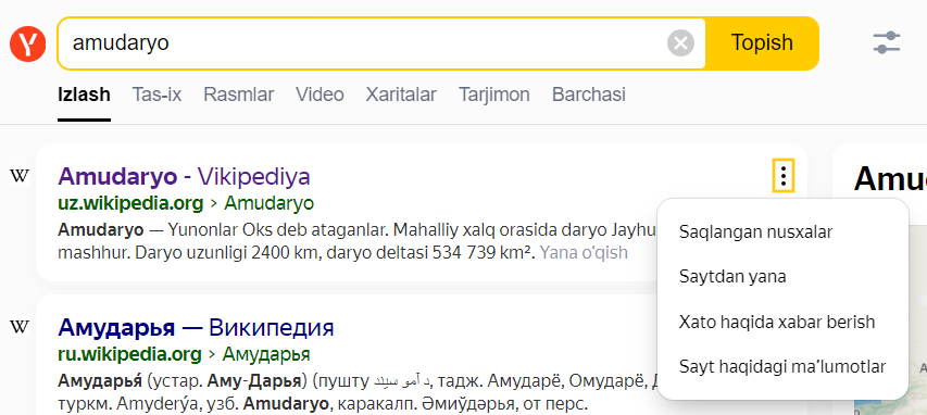 Agar sahifa mavjud bo‘lgan, lekin yaqinda olib tashlangan bo‘lsa, uning Yandex’da saqlangan nusxasini ko‘rishingiz mumkin.